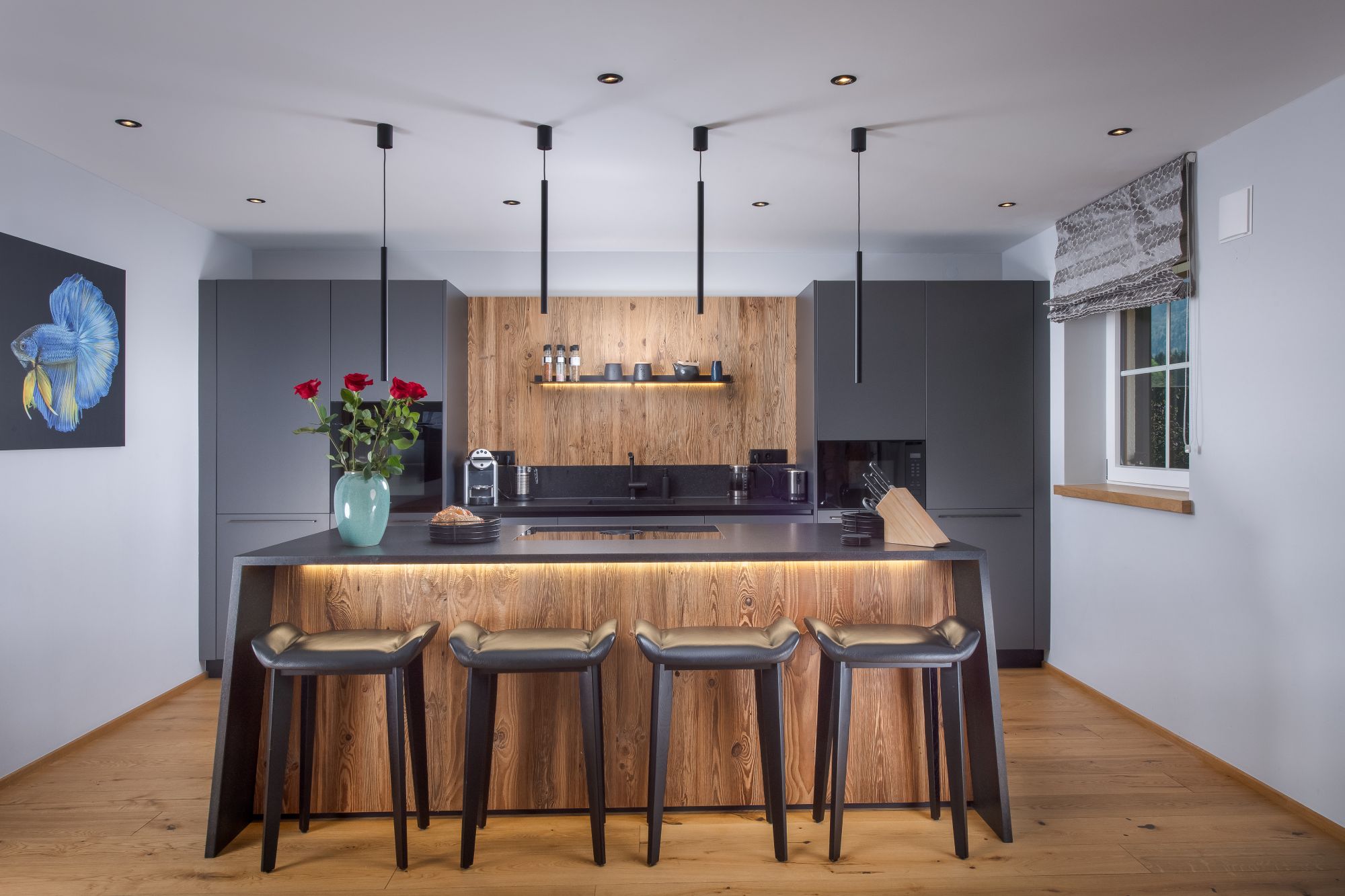 Luxury Holiday Apartment (inkl. Ausstattung) im 2. Stock (Westausrichtung) mit zwei Parkplätzen, offenem Wohn- und Essbereich, drei Schlafzimmern, zwei Bädern, Gästetoilette, Balkon und Blick auf die Tegernseer Berge.