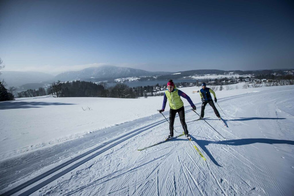 Ein wahres Paradies, Langlaufen am Tegernsee. Mehr als 100 Kilometer gespurte Loipen die einen durch die liebliche Winterlandschaft im Tegernseer Tal führen, vorbei an verschneiten Wäldern. Von leicht bis schwer gibt es in den verschiedenen Ortschaften rund um den Tegernsee die Möglichkeit sich und sein Können zu testen.